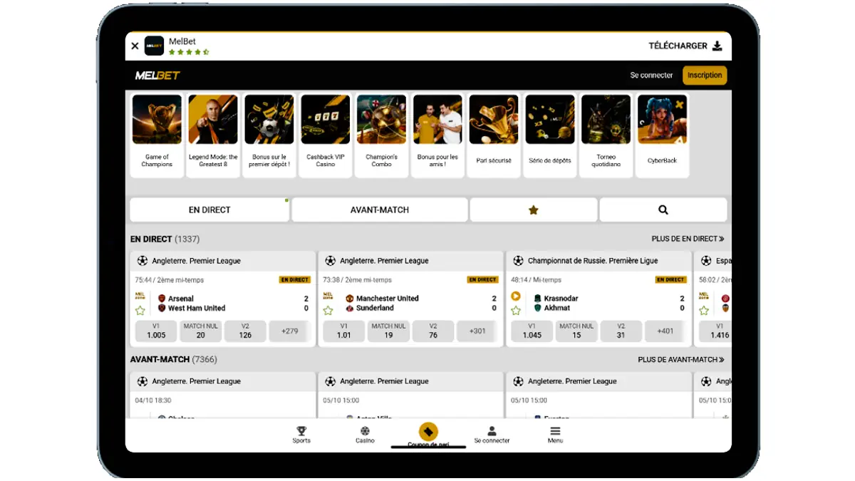 La zone des paris en direct est l’un des points forts de Melb͏et.͏ On peut miser pendant les matchs et voir les cotes changer en temps réel. La partie montre aussi des chiffres et diffuse plein d’évènements courants.