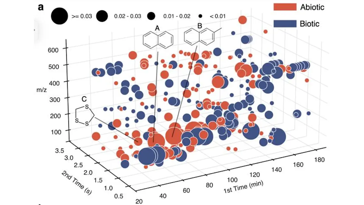 Le cadre a identifié les hydrocarbures aromatiques polycycliques et leurs variantes alkylées comme des caractéristiques prédictives clés, avec le naphtalène émergeant comme le composé le plus prédictif pour les échantillons abiotiques. Selon les auteurs, l’approche permet une détection de biosignatures évolutive et non biaisée et pourrait être un outil puissant pour interpréter les mélanges organiques complexes qui seront rapportés par les missions actuelles et futures de retour d’échantillons planétaires.
