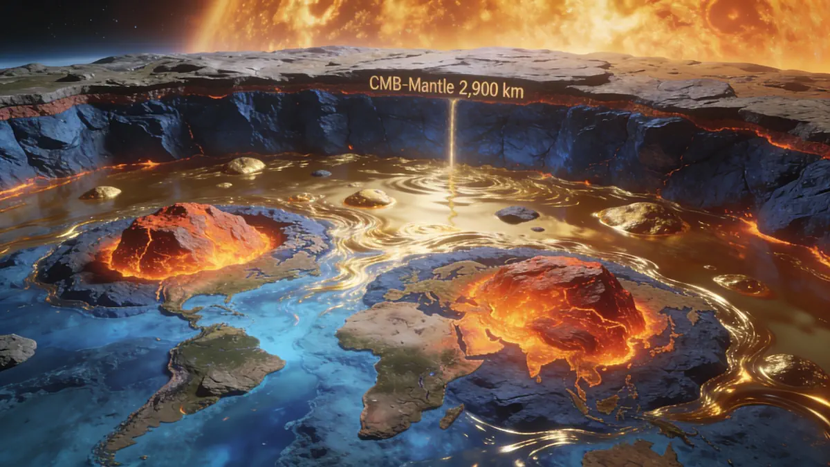 Dans une étude publiée dans Nature Geoscience, des recherches dirigées par l’Université de Liverpool ont identifié des preuves magnétiques que deux structures rocheuses immenses et ultra-chaudes, situées à la base du manteau terrestre, à environ 2 900 kilomètres sous l’Afrique et le Pacifique, affectent le noyau externe liquide sous-jacent.