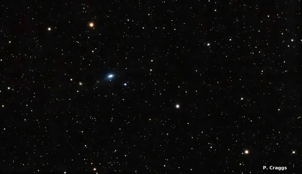 La comète interstellaire (à environ 280 millions de km de la Terre au 22-24 novembre) partage visuellement le même champ que des galaxies situées un million de fois plus loin. L’image a été prise par Paul Craggs qui montre l’aspect allongé de la comète. Elle « pourrait résulter d’un flou de mouvement de l’image. » selon lui. Légèrement décentrée vers la gauche (centre-gauche de l’image), elle apparaît comme un petit objet diffus bleuté avec une queue courte et une coma compacte. Sa position à proximité de plusieurs galaxies confirme qu’elle traverse actuellement la constellation de la Vierge en direction de celle du Lion.