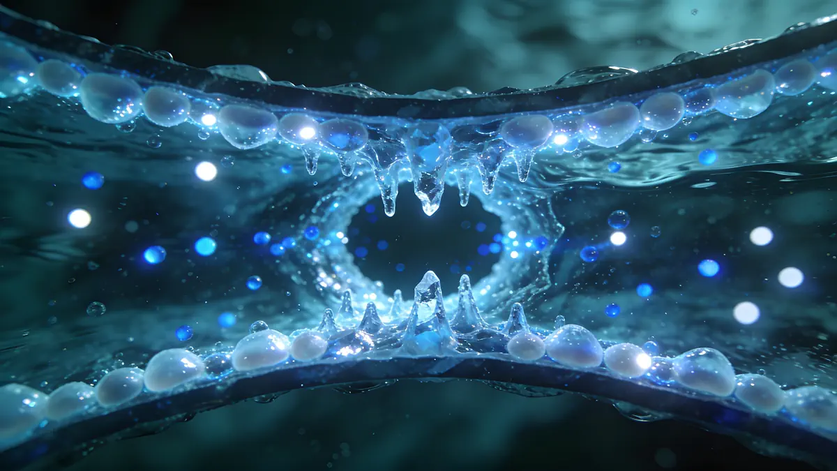 L’équipe a formé son revêtement lubrifiant à partir de bicouches lipidiques, des structures naturelles présentes dans les membranes cellulaires. Les bicouches lipidiques s’auto-assemblent lorsque deux couches de molécules grasses se rejoignent par leurs queues hydrophobes, laissant leurs têtes hydrophiles pointées vers l’extérieur. Déposées sur les nanopores en forme de stalactites intégrés dans une membrane de nitrure de silicium, les têtes hydrophiles des bicouches attirent une couche d’eau très fine. Cette couche, de seulement quelques molécules d’épaisseur, adhère au nanopore et empêche l’interaction directe avec les ions en écoulement, réduisant ainsi les frottements.