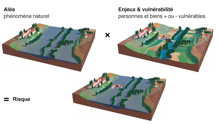 En effet, le risque d’inondation correspond à la conjugaison, en un même lieu, d’un aléa (phénomène naturel aléatoire comme l’inondation) avec les enjeux (humains, biens, économiques et environnementaux) susceptibles de subir des dommages. L’ampleur du risque dépend fortement de la vulnérabilité des enjeux exposés, autrement dit de leur résistance face à un évènement donné.