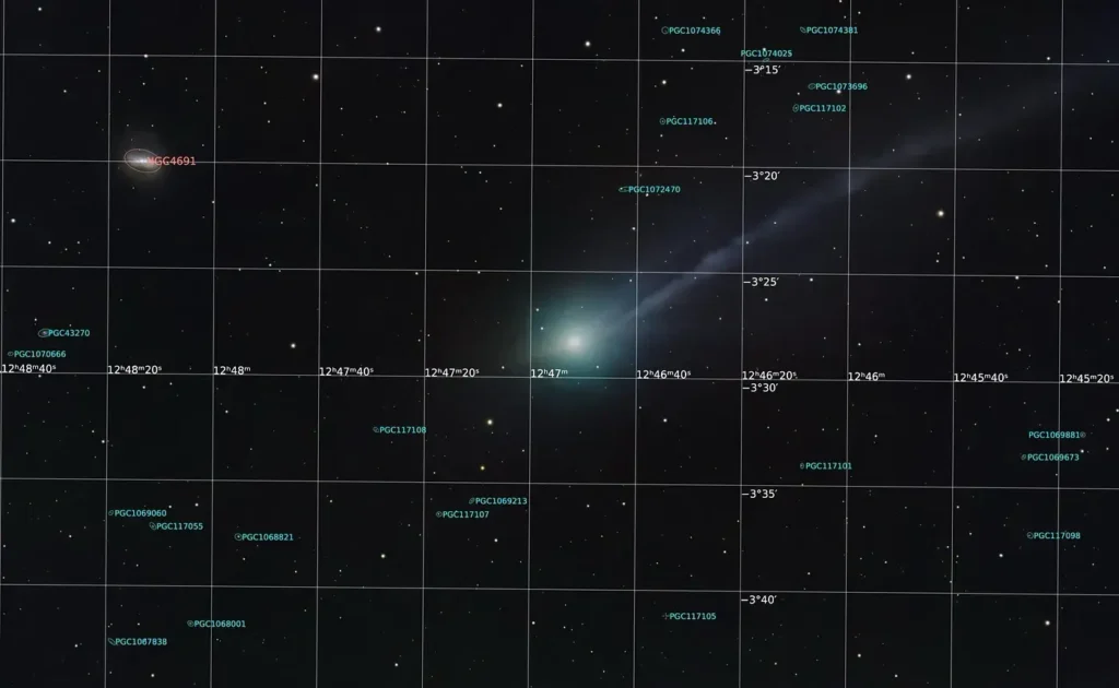 La comète était aussi de passage par la galaxie NGC4691, ce qui donnait vraiment l’impression que l’objet venait d’un autre monde.«
