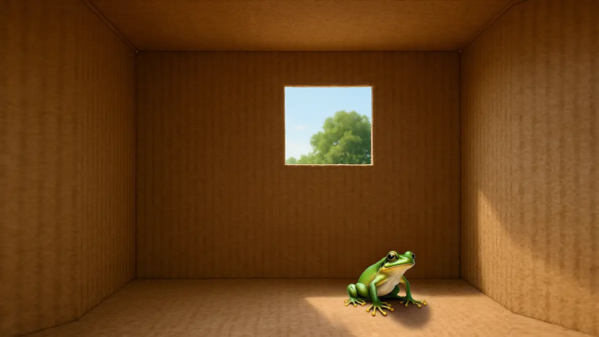 Imaginez une grenouille dans une boîte. Cette boîte possède une grande ouverture à une certaine hauteur. La grenouille peut-elle s’échapper ? Cela dépend de son énergie : si elle peut sauter assez haut, elle pourrait en principe sortir. Mais sa réussite effective est une autre question. La hauteur du saut ne suffit pas – la grenouille doit aussi sauter précisément vers l’ouverture.