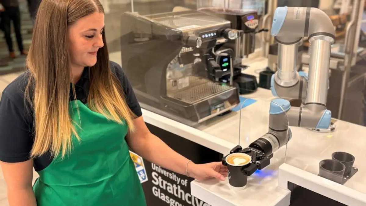 La recherche, la conception et les tests ont été réalisés sur le campus par des doctorants du Département de conception, de fabrication et de gestion de l’ingénierie (DMEM). Le cobot est considéré comme le premier utilisé commercialement de cette manière sur un campus universitaire écossais. Travaillant aux côtés de l’équipe de restauration, le robot barista émule les mouvements humains pour créer un café de haute qualité.