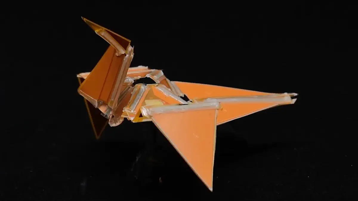 Une fois intégrés, ces circuits imprimés permettent aux chercheurs de chauffer des zones extrêmement spécifiques de la structure polymère et d’effectuer un contrôle en boucle fermée à l’aide de capteurs de température intégrés. Ce chauffage exploite la structure soigneusement conçue du polymère, provoquant la contraction du matériau de la manière dont les ingénieurs l’ont programmé dans l’impression du polymère. Ces contractions déclenchent le pliage le long des charnières. Pour garantir que le matériau ne se plie qu’au niveau des charnières, les chercheurs ont ajouté de légers panneaux de fibre de verre aux circuits imprimés flexibles entre les charnières polymères.