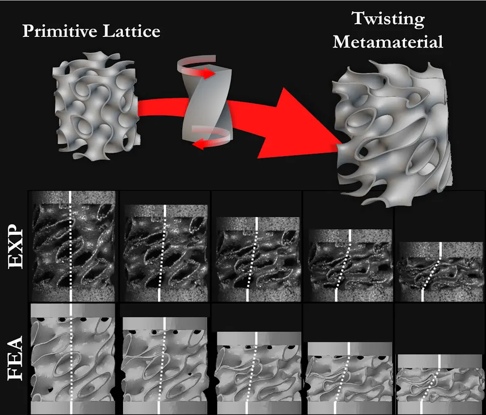 La prouesse est rendue possible par la fabrication additive, aussi appelée impression 3D. Grâce à ce procédé, il est possible de donner au matériau une forme interne très spécifique, appelée « treillis gyroïde ». Cette structure, très légère et poreuse, permet au matériau de se vriller, un peu comme un bouchon qui tourne dans son goulot. Pour vérifier son fonctionnement, les scientifiques ont mêlé expériences réelles et simulations numériques sophistiquées, tenant compte des petites imperfections laissées par l’impression 3D.