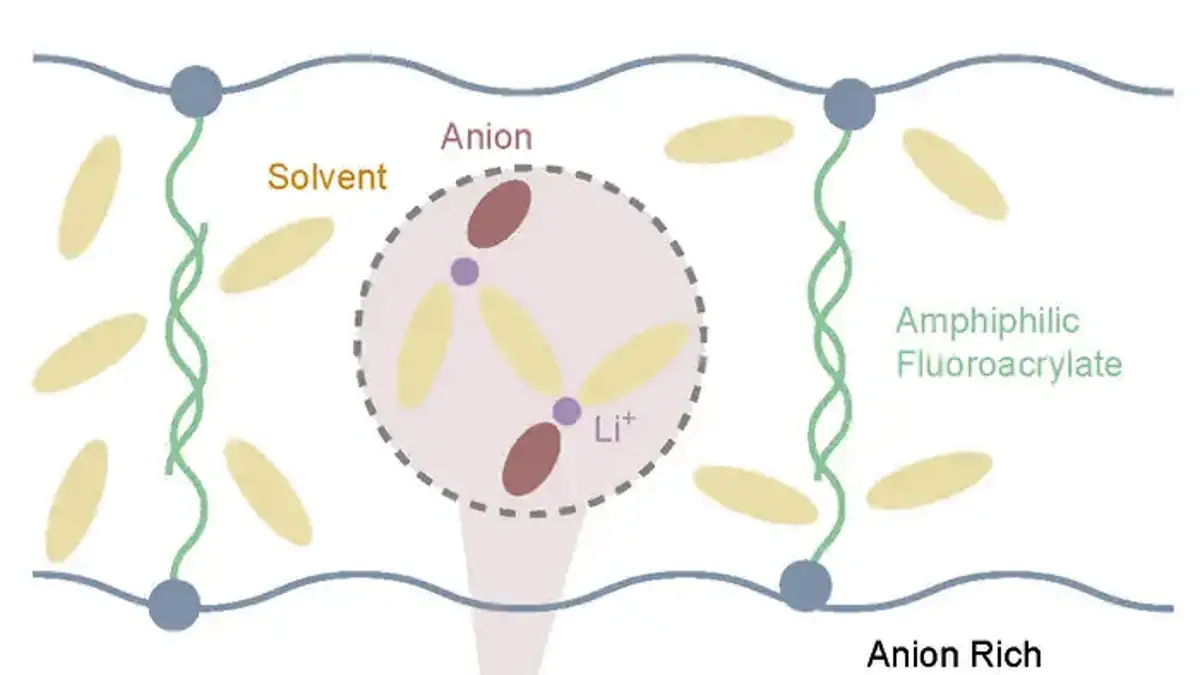 Les chercheurs ont conçu un électrolyte polymère en gel contenant un réseau polymère salt-phobic parasite. Cette structure surmonte les défis précédents en repoussant sélectivement les sels de lithium tout en attirant les molécules de solvant. Ce contraste chimique unique divise spontanément l’électrolyte en domaines nanométriques avec des compositions locales différentes, ce qui favorise la formation d’une couche protectrice efficace sur la surface du lithium.