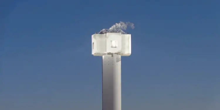La phase 4 comprend une tour solaire de 100 MW. Des milliers de miroirs solaires s’étaleront sur plusieurs kilomètres carrés autour d’une tour de 260 mètres de haut. Ils concentreront l’énergie solaire sur un récepteur CMI de 30 mètres de haut installé au sommet de la tour et qui chauffera les sels fondus à plus de 560°C. Ils pourront ensuite être envoyés dans des réservoirs de stockage d’énergie pour une utilisation ultérieure, ou être utilisés immédiatement pour produire de la vapeur à haute température passant par une turbine pour produire de l’électricité.