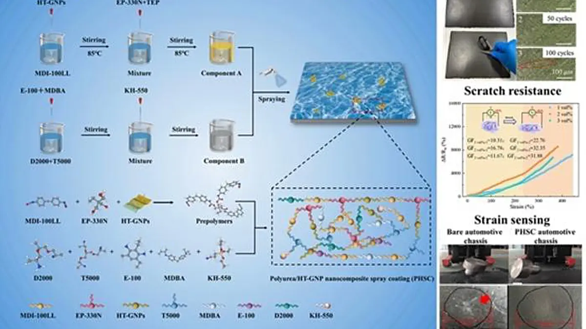 Dans une étude publiée dans la revue KeAi Advanced Nanocomposites, une équipe de recherche présente une nouvelle approche qu’elle a développée : un revêtement nanocomposite de détection à base de polyurée appliqué par pulvérisation et renforcé avec du graphène fonctionnalisé, conçu pour allier une protection mécanique robuste à une surveillance en temps réel des dommages et des contraintes pour les infrastructures et les structures automobiles.