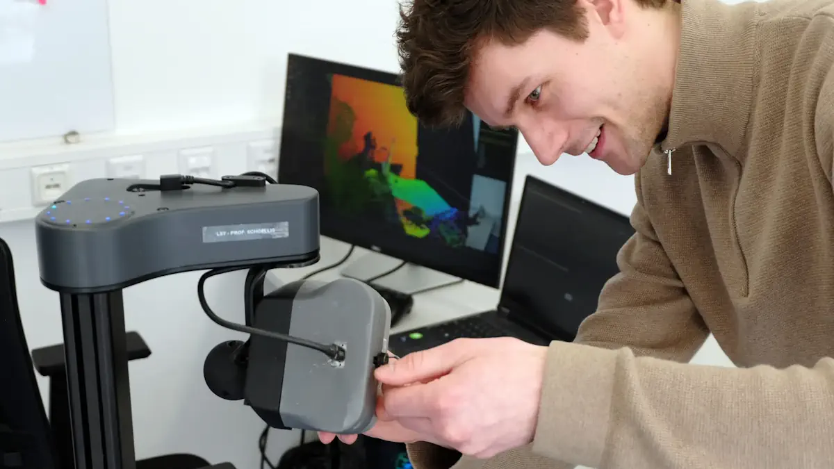 Le nouveau robot du Laboratoire de Systèmes d’Apprentissage et de Robotique de la TUM, dirigé par le Prof. Angela Schoellig, ressemble à un manche à balai sur roues avec une caméra montée au sommet. C’est l’un des premiers robots qui intègre non seulement la compréhension d’image mais l’applique aussi à une tâche clairement définie.