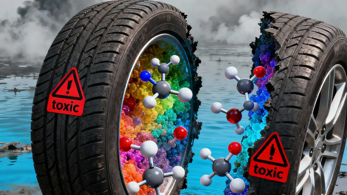 Au-delà des risques sanitaires, l’impact environnemental s’avère tout aussi préoccupant. L’étude recense 111 substances fortement toxiques pour les milieux aquatiques et 237 ayant des effets néfastes à long terme sur les écosystèmes. Une fois libérées par l’abrasion des pneus, les micro et nanoparticules contaminent le cycle de l’eau, la chaîne alimentaire et la qualité de l’air.