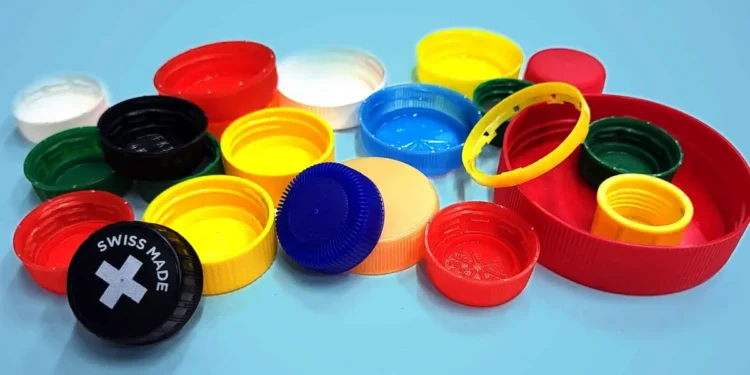 Légende illustration : La plupart des bouchons de bouteilles de boisson sont fabriqués en polypropylène. Avec le polyéthylène, ils représentent 60 % de l’ensemble des déchets plastiques. (Image : Shibashish Jaydev / ETH Zurich)